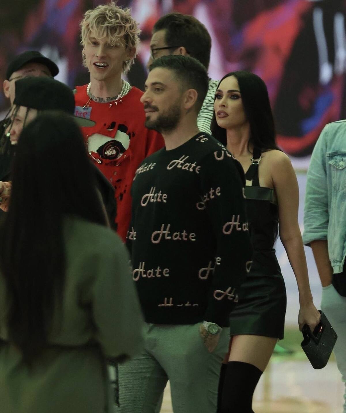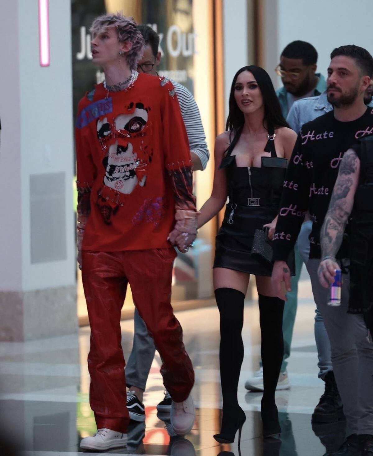 Machine Gun Kelly usó una playera larga color roja de Misfits con mangas largas decoloradas, pantalón rojo a juego y zapatillas blancas. Por su parte, Megan Fox usó un minivestido negro con gran escote, tirantes anchos y cinturón ancho. Para complementar usó botas hasta los muslos.