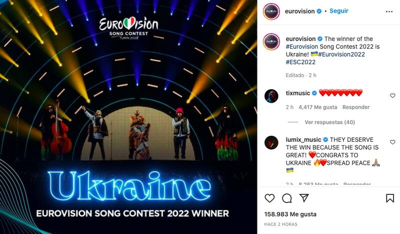 Fue una respuesta contra la invasión de Putin a Ucrania, sin duda. Una respuesta política en un evento que muchas veces se ha tomado a broma pero que no deja de tener repercusiones en la industria musical y en el que han ganado propuestas como la de la banda italiana Maneskin, que se llevó el premio el año pasado.