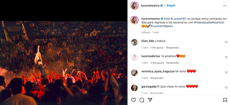 En su cuenta de Instagram, Lucero subió una foto del recuerdo el 5 de mayo pasado que acompañó con el texto: "Este #LuceroTBT es porque estoy contando los días para regresar a los escenarios con #HastaQueSeNosHizo!".