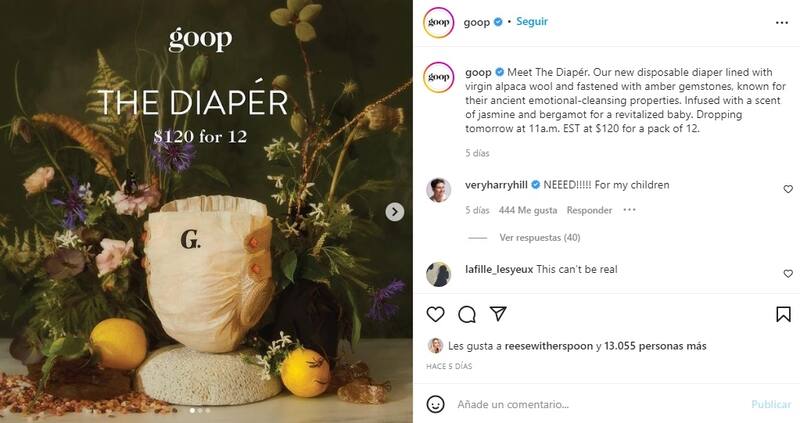 Los pañales de lujo se lanzaron con un precio de 120 dólares por un paquete de 12 pañales, según se anunciaba en la cuenta de Instagram de Goop.