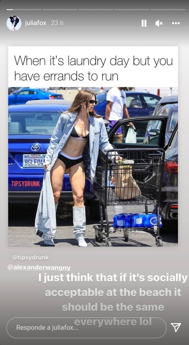 En respuesta a la criticas que surgieron en el ciberespacio por su atrevida aparición pública, Fox utilizó sus historias de Instagram para defenderse: "Simplemente creo que si es socialmente aceptable en la playa, debería ser igual en todas partes".