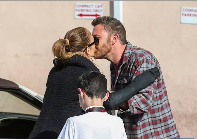La pareja, que se conoció en 2001 en el set de "Gigli", donde interpretaron a criminales atrapados en un trabajo, fue captada intercambiando un dulce beso en los labios en Los Ángeles, California.