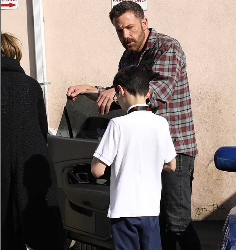 Mientras que Ben, quien pareció de estar de excelente humor, vistió una camisa a cuadros burdeos y gris, debajo de ella, lució una camiseta gráfica de cuello redondo color burdeos desteñido, así como jeans oscuros y tenis a juego.