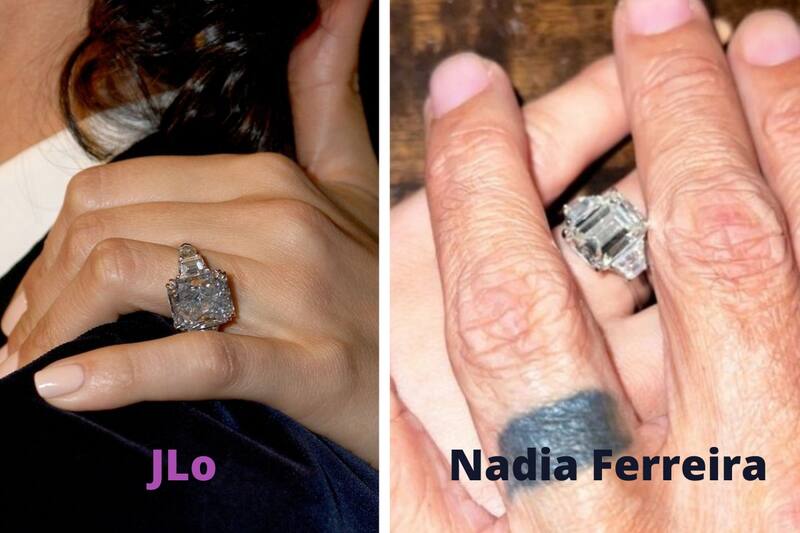 Según declaraciones de Fried al medio Page Six, el diamante gigante en el anillo de Nadia probablemente tenga al menos 10 quilates y se estimaría en un valor de medio millón de dólares, además de revelar que el diseño es muy similar al Harry Winston, que le dio a JLo, aunque la diferencia está en el diamante.
