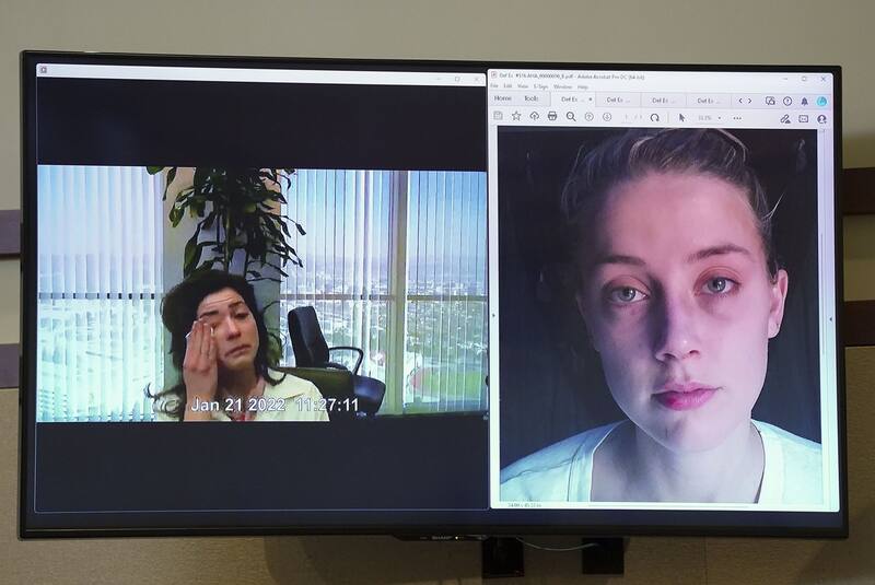 La testigo presentó una foto en la que muestra a la actriz con la nariz hinchada, un labio cortado y los ojos moderadamente amoratados y otra de mechones de pelo que dijo que le habían arrancado a Heard.