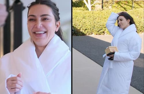 En una de las escenas de este reality show se puede ver a la socialité en la comodidad de su casa, usando una bata blanca, con el cabello suelto, de cara lavada mientras recibe a su ex Kanye West.