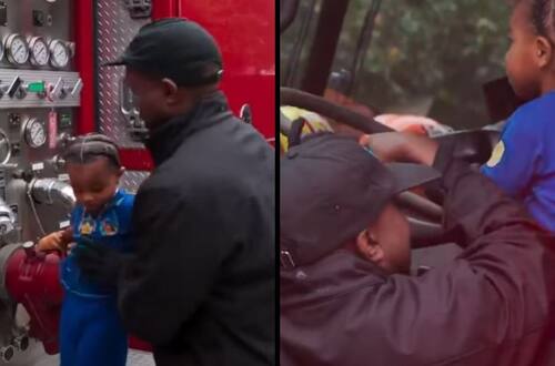 Al día siguiente, el músico llegó a la casa de su ex a bordo de un camión de bomberos, para sorprender a sus hijos.