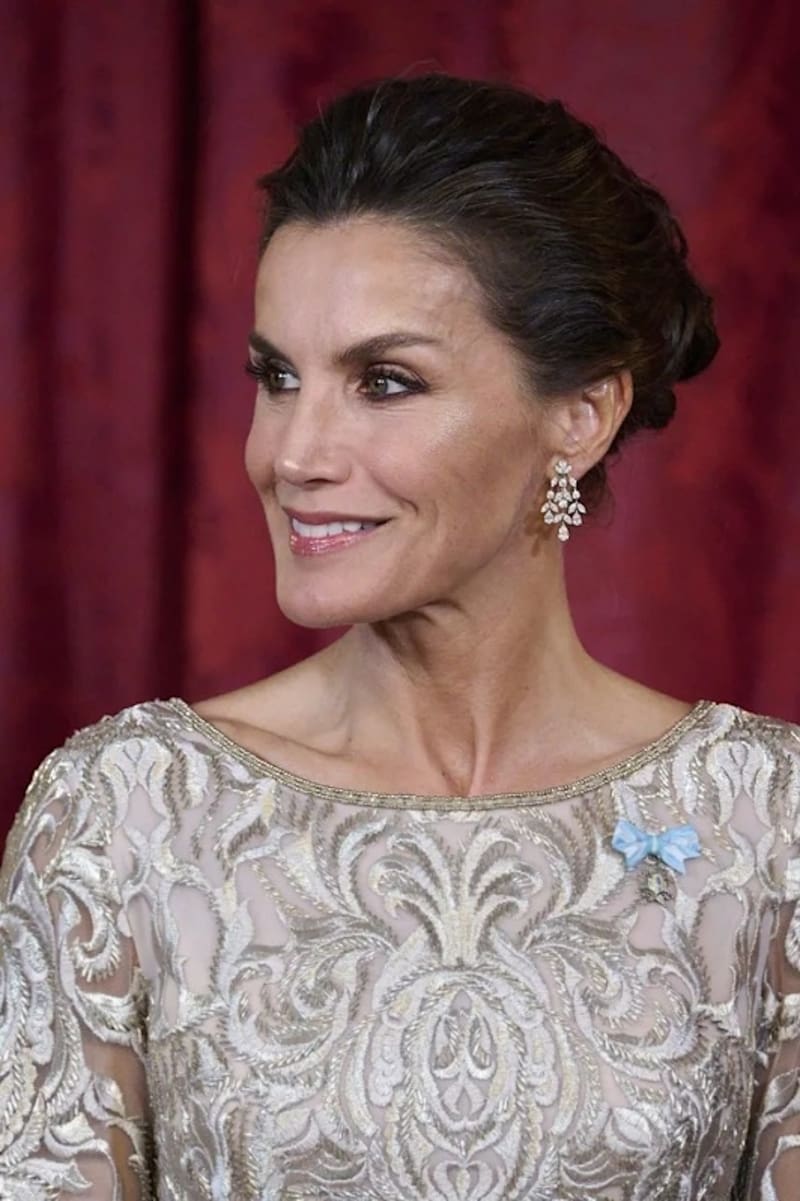 Los aretes fueron la única joya que utilizó Letizia en ese encuentro, por respeto a la jaquesa y en agradecimiento al costoso regalo que ahora es propiedad del Patrimonio del Estado, según las normas de la Casa del Rey en materia de obsequios.