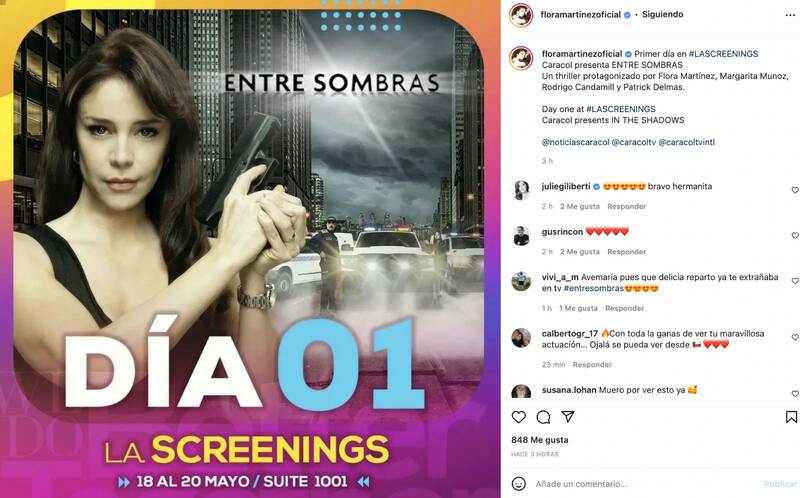 La actriz Flora Martínez, ampliamente reconocida por sus papeles en "Vecinos", "La bruja" y "Tiempo final", entre otros tantos, regresa al mundo de la televisión, esta vez para Caracol Televisión con la nueva producción "Entre sombras".