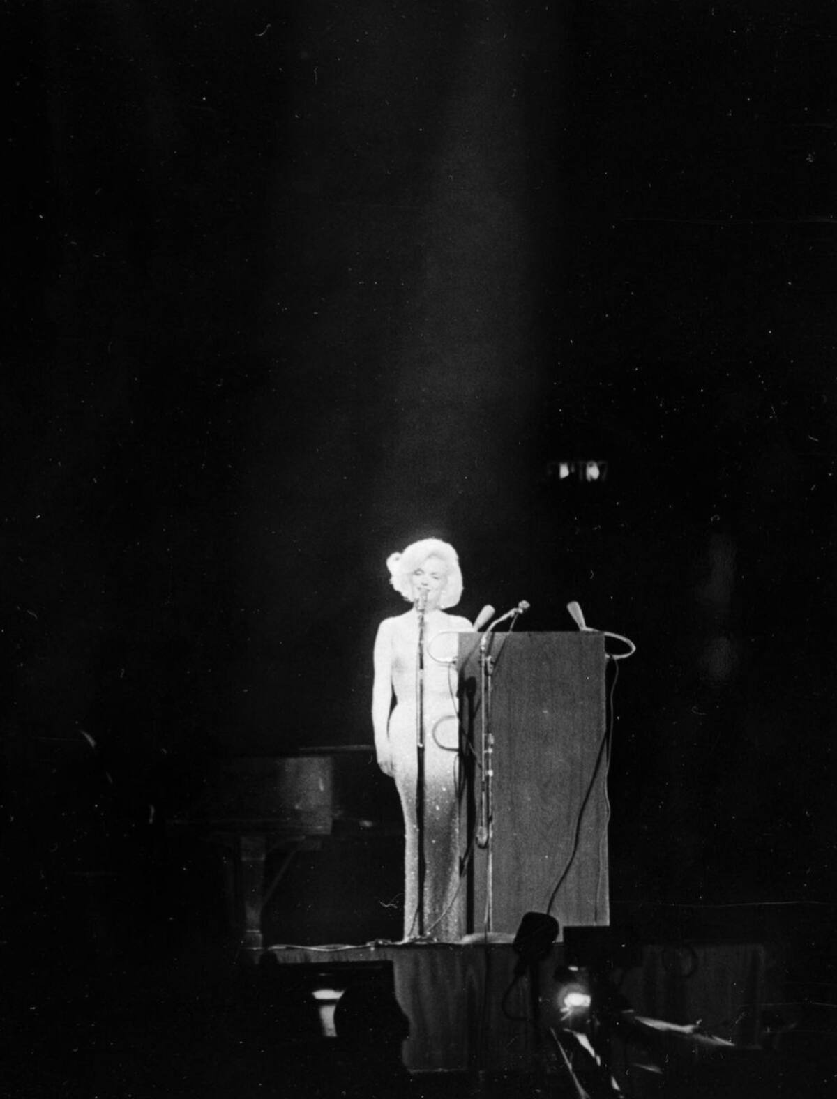 En el evento de este lunes, la guapa usó el mismo vestido que el ícono del cine clásico, Marilyn Monroe en 1962, al cantarle feliz cumpleaños al presidente estadounidense de esa época, JFK.