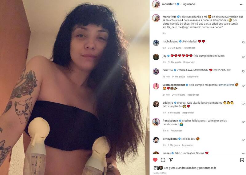 "Feliz cumpleaños a mí en esta nueva versión que se levanta a las 4.00 a. m. a hacerse extracciones. Por cierto, cumplo 39 años. Pensé que a esta edad una ya se sentía adulta, pero me sigo sintiendo como una bebé", escribió al pie de una foto en la que se le ve sin una gota de maquillaje, despeinada y con dos aparatos para extraer leche en cada uno de sus senos.