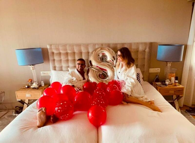 Desde la cama con batas, lentes de sol (no entendemos la razón) muchos globos rojos y uno plateado en forma de número ocho, el protagonista de "La máscara del Zorro" compartió la imagen para sus más de tres millones de seguidores. "Ocho años juntos disfrutando de cada segundo", escribió el actor.