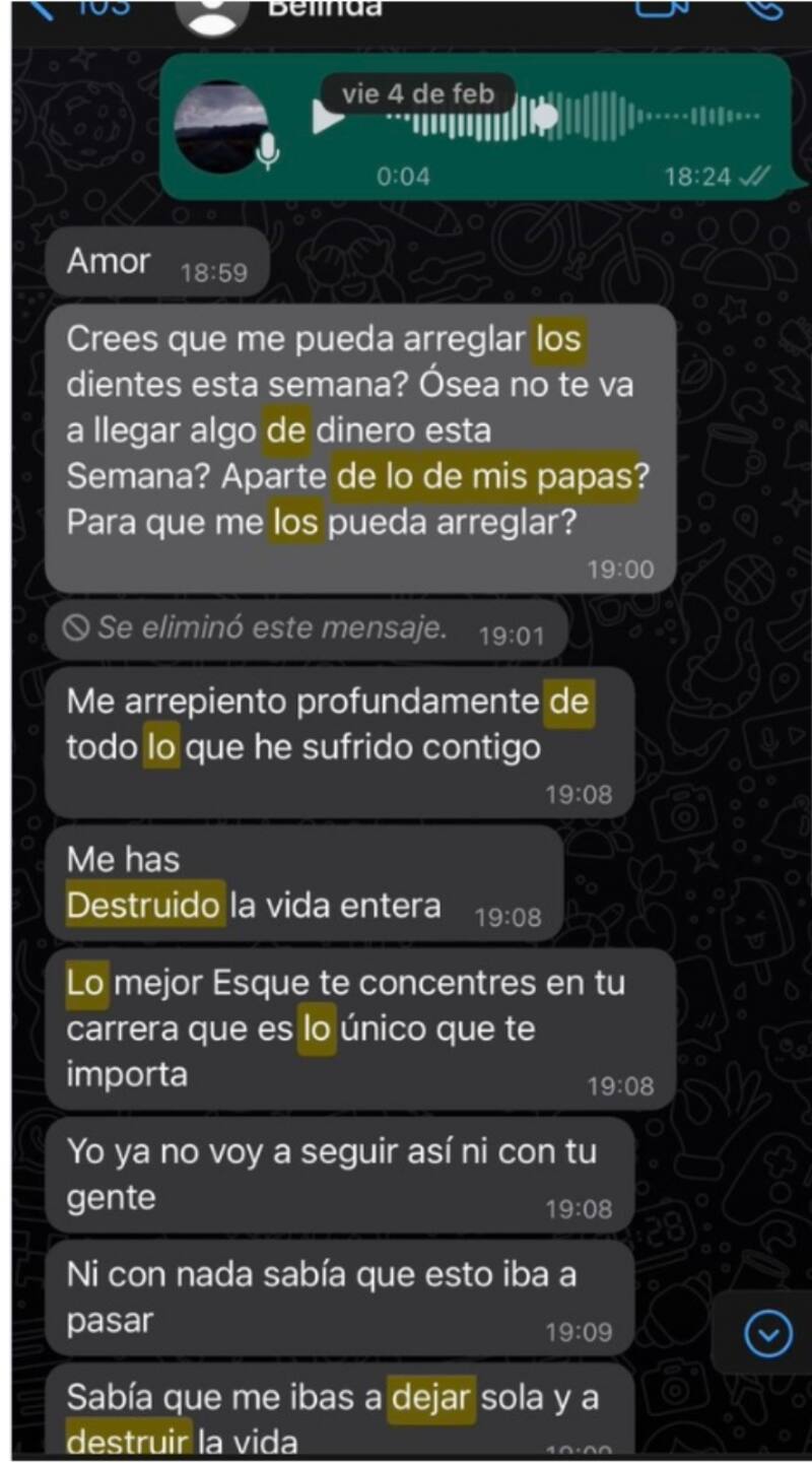 Además, el intérprete compartió una conversación, en donde Belinda acusa a Nodal de destruirle la vida: "Me arrepiento profundamente de todo lo que he sufrido contigo. Me has destruido la vida entera. Lo mejor es que te concentres en tu carrera que es lo único que te importa".