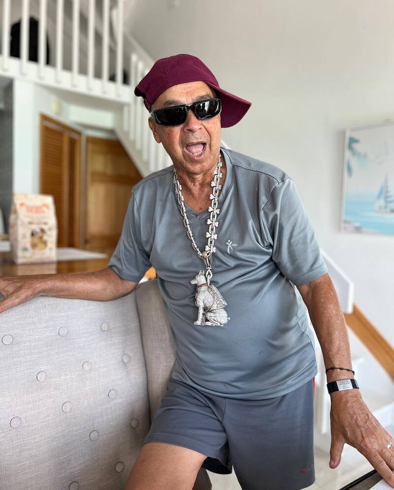En las siguientes vemos a sus sobrinos, a su hermana y su mamá hasta llegar a una fotografía de su abuelo igualmente posando con los lentes y el costoso collar pero haciendo una pose divertida.