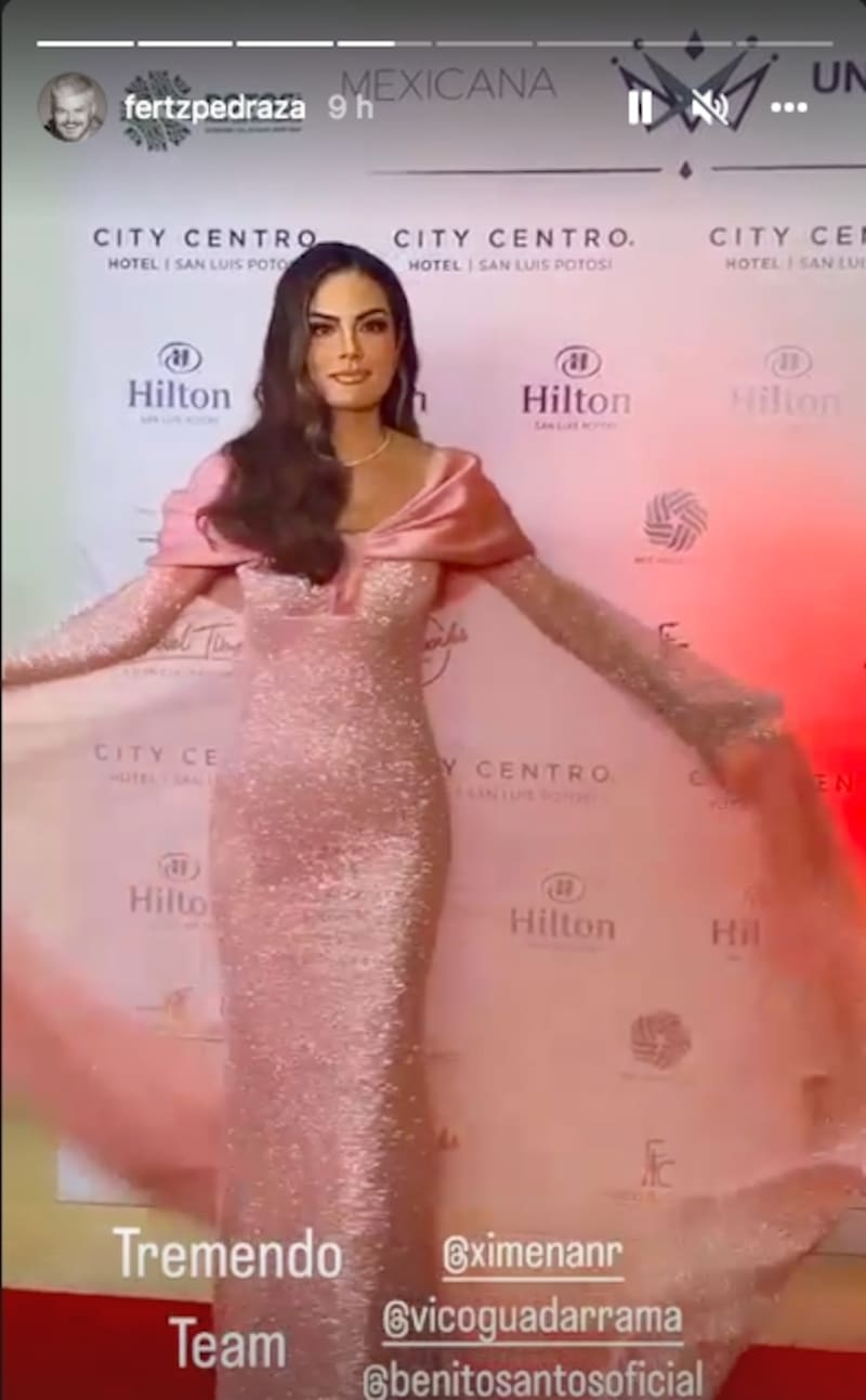 Al final de varias historias le dedicó un pequeño texto a su equipo "Gracias infinitas a mi equipo que siempre cuida cada detalle... Son lo máximo. Gracias por hacer su trabajo con tanto amor para mí. Sin duda tengo suerte de tenerlos en mi vida", escribió la segunda Miss Universo de México etiquetando al diseñador Benito Santos, Miguel Hernan, el maquillista Víctor Guadarrama y el hairstylist Fertz Pedraza.