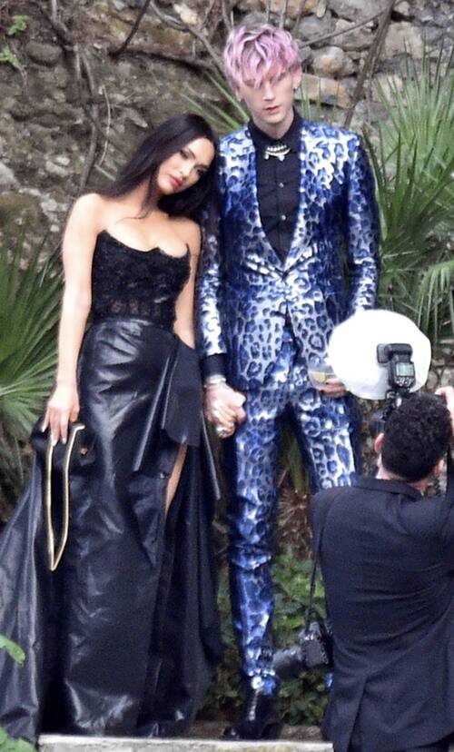Machine Gun Kelly llegó solo a la ceremonia antes de reunirse con Megan Fox más tarde. Llevaba un traje azul con estampado de leopardo, mientras que la actriz de Transformers lució un  impresionante  vestido de negro con corsé de la colección otoño-invierno 2021 de Zuhair Murad.
