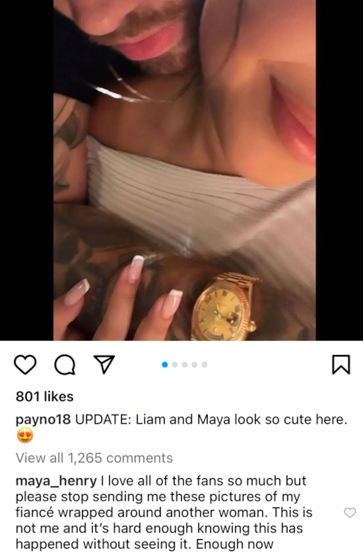 Fotos filtradas a las que Maya Henry reaccionó. La joven de 22 años le pidió a sus fans que "por favor dejen de enviarme estas fotos de mi prometido abrazando a otra mujer".