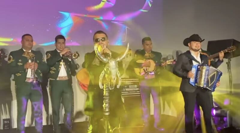 En las imágenes presentadas en el Programa "HOY" se puede ver al cantante de "Ya no somos ni seremos" amenizando un evento privado, donde luce un elegante traje negro que acompañó con botas y lentes de sol del mismo color.