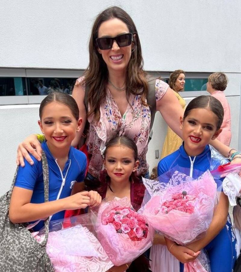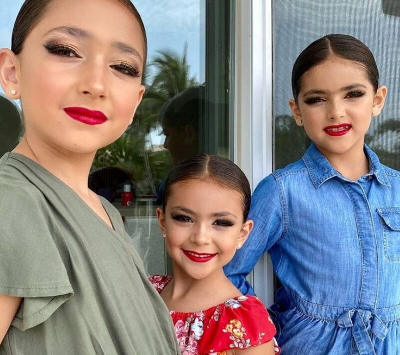 "Parece que traen filtro de los que maquillan… ¡pero nooo! ¡Ellas estuvieron soñadas en su show de baile! (Siento raro de verlas tan maquilladas, ¡pero en el teatro se veía increíble!)", escribió al pie de una publicación de Instagram donde se ve a las tres niñas muy maquilladas.