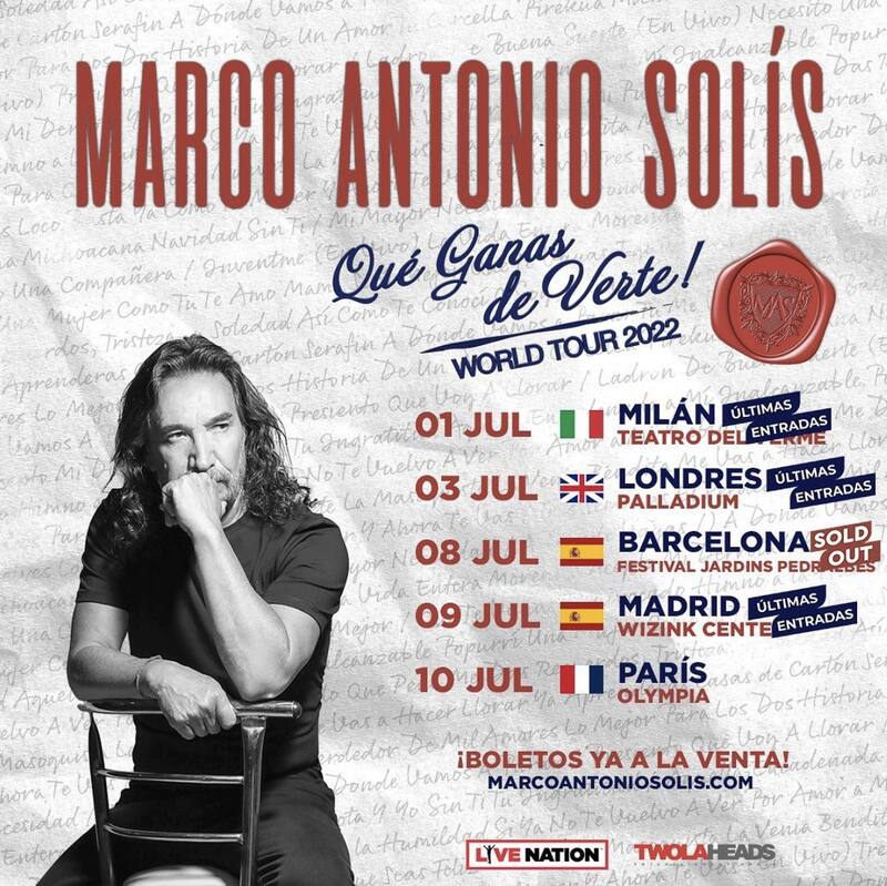 Los Bukis, después de estar alejados 25 años de los escenarios, han tenido un éxito total en su gira por Estados Unidos por lo cual el "Buki mayor" ha decidido tener un par de fechas en Europa y Latinoamérica con su gira "Qué ganas de verte". Así lo anunció Marco Antonio Solís en su Instagram.