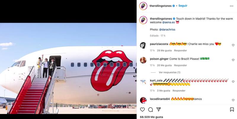 El primero en bajar fue Jagger, luego Wood y al final Richards, quienes se abrazaron y saludaron al salir de la puerta de embarque de la aeronave, al pie de las escalerilla. "¡Aterrizamos en Madrid! Gracias por la cálida bienvenida", se pudo leer en el posteo que la banda subió en su cuenta oficial de Instagram.