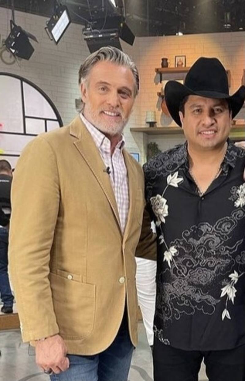 El cantante de regional mexicano estuvo como invitado en un programa de revista, donde aprovechó Juan Soler para aprender del mejor algunos populares pasos del género.