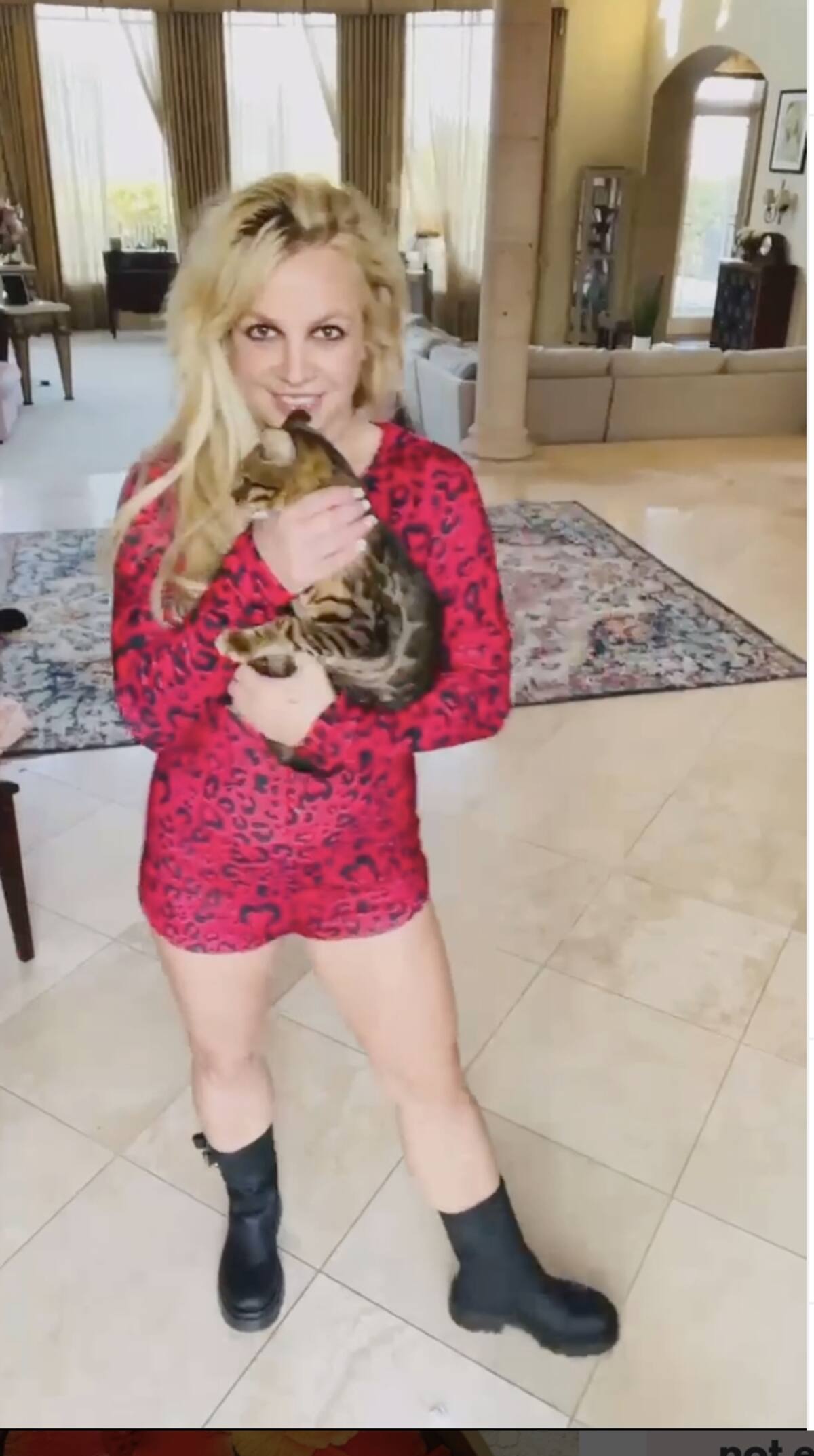 Actualmente hemos visto en el Instagram de  la intérprete de "Baby one more time" pasando tiempo con sus mascotas ya sea bailando con su gato bengalí o posando con su perro un pastor ovejero australiano.
