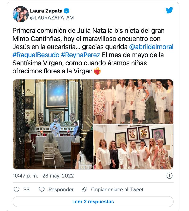 Fue la mismísima Laura Zapata la que dio detalles sobre la primera comunión, compartiendo algunas fotos exclusivas del evento.