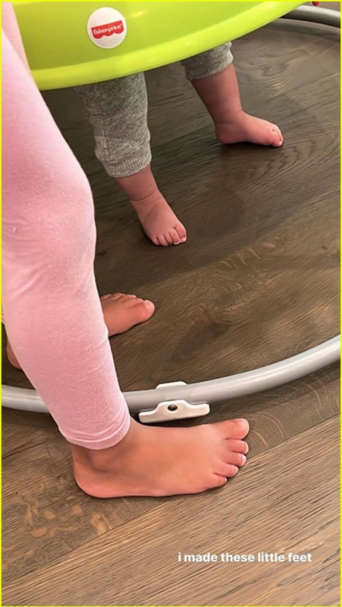 Aunque no mostró la cara de ninguna de los dos, sí presumió los pies de ambos escribiendo “yo hice estos pequeños pies”.
