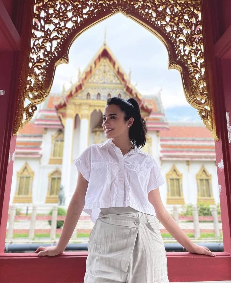 A través de sus fotografías, Gruber ha dado cuenta de lo maravillada que esta con la arquitectura del lugar, pero en especial de los templos de Bangkok, por su simetría y sus detalles. Durante este recorrido por Tailandia también estuvo por el templo blanco que representa la pureza, en donde los millones de espejos que reflejan la luz del sol simbolizan iluminación de Buda y la que podremos encontrar en nuestra vida.