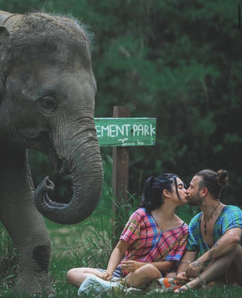 "Sin duda este día fue de los más increíbles que hemos tenido hasta ahora, una experiencia única y llena de paz a pesar del tamaño de estos seres. Durante la planeación de este viaje buscamos un lugar donde los elefantes no fueran parte de la diversión de las vacaciones, solo queríamos pasar un día en la vida de ellos sin modificar su rutina y hábitos diarios", apuntó la actriz.