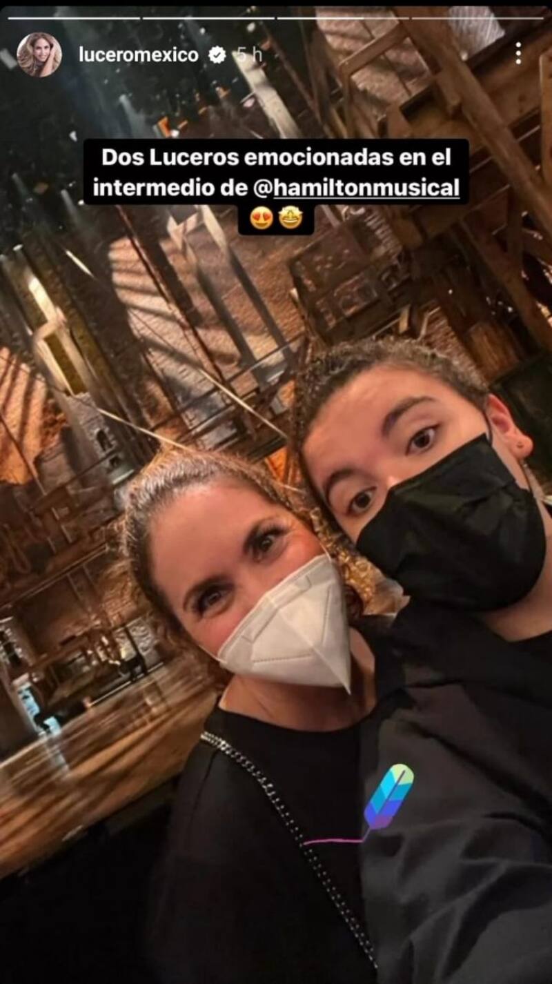 En una sus historias, las dos Luceros posaron en una selfie, en donde dejaron ver su excelente relación y constancia de su parecido físico. "Dos Luceros emocionadas en el intermedio de @hamiltonmusical". En la imagen aparece la protagonista de "Alborada" y la joven con cubrebocas y ambas con vestimenta color negro.