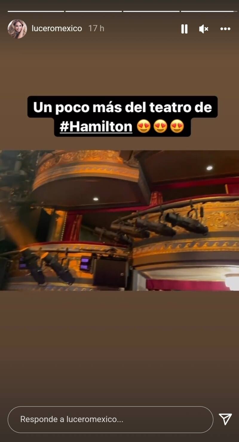 Lucero también subió unas fotos y videos en las que dio a conocer a sus fans que disfrutó del musical "Hamilton: An American", en el Richard Rodgers Theatre junto con su hija de 17 años, quien ya debutó en una obra.