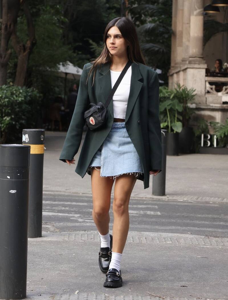 En el momento de madre e hija, Mayrín Villanueva aprovechó para tomarle fotos a su hija la cual mostró las últimas tendencias en moda al vestir blazer y zapatos con calceta.