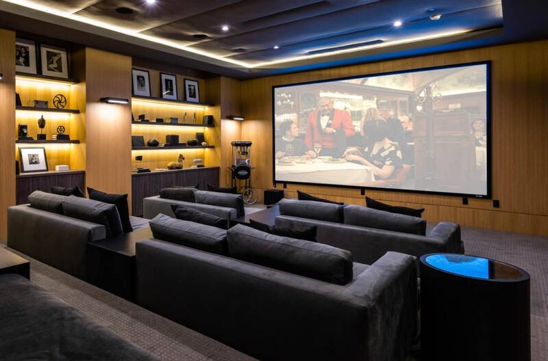 La mansión es ideal para el entretenimiento, ya que en el sótano de la propiedad se encuentra un sauna, una lujosa sala de cine, un gimnasio con espejos y un bar. Las lujosas comodidades continúan al aire libre con una piscina infinita y un spa ubicado junto a una cancha de básquetbol.