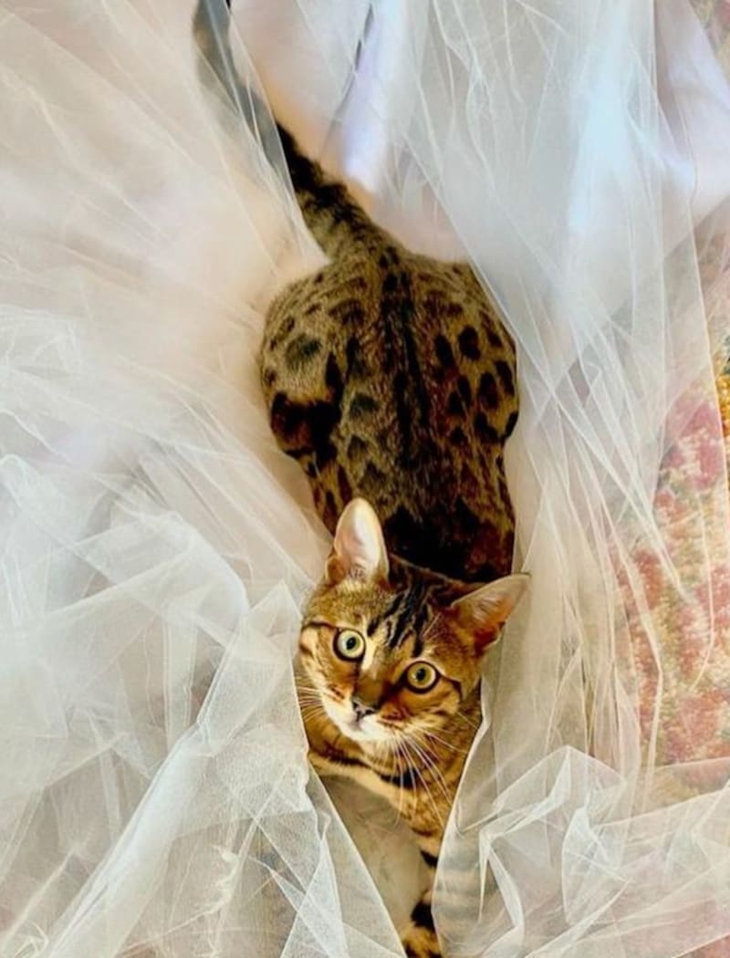 “Les presento a Wendy. Es hora del miau muchachos y muchachas. Y sí, este es el velo de mi vestido de novia”, escribió junto a algunas instantáneas.