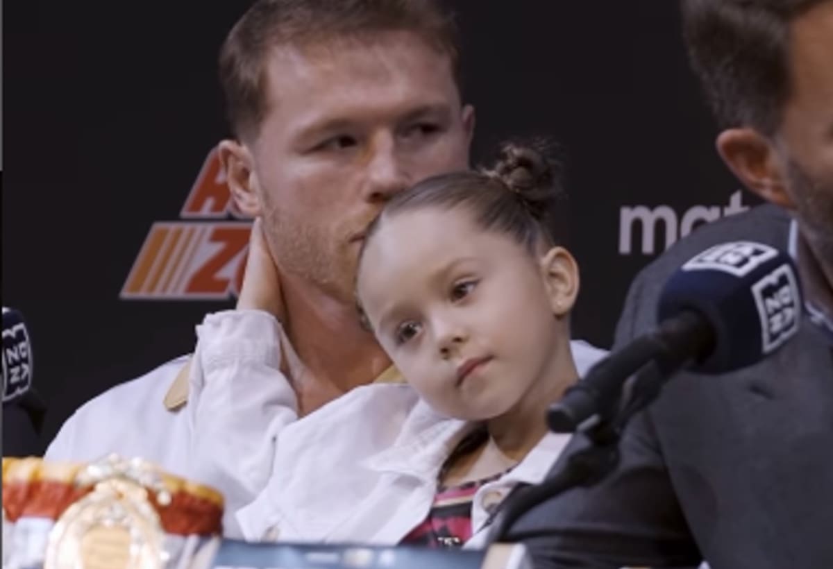 "Es un peleador muy bueno, tiene una gran habilidad y es un campeón sólido en las 175 libras. Pero yo creo en mis habilidades y en mi capacidad para poder llevarme esta pelea", mencionaba Saúl mientras su hija, fruto de su matrimonio con Fernanda Gómez, le fruncía la nariz a Bivol y le mostraba la lengua.