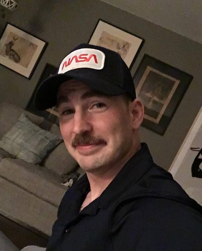 El actor compartió una foto sin fecha de él antes de que comenzara la filmación de la película de Netflix con un bigote completo y una foto posterior sin fecha, después de que terminó la filmación en la que se ve que regresó a su aspecto habitual y afeitado.