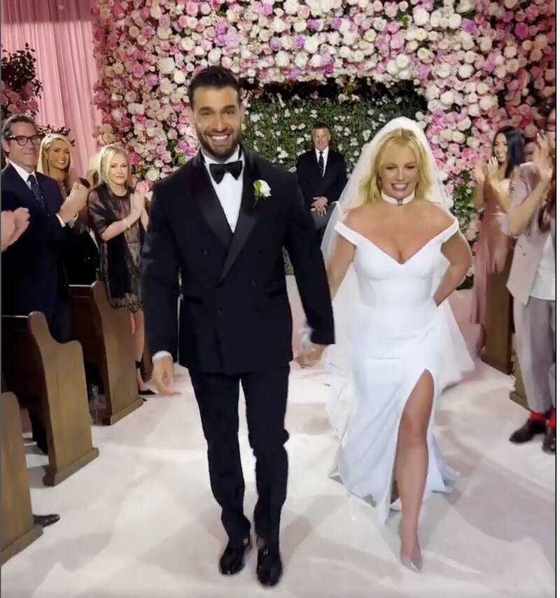 Poco a poco se han empezado a revelar detalles de la bonita e íntima boda que tuvieron Britney Spears y Sam Asghari. Entre los 60 invitados estuvieron las amigas cercanas de la princesa del pop: Drew Barrymore, Selena Gómez, Madonna, Paris Hilton y Donatella Versace, quién además fue la diseñadora de su vestido.