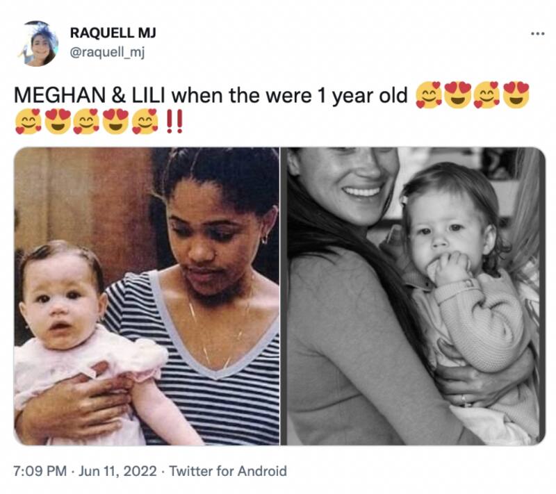 "¡Oh, gemelas!" y "Tienes razón, aparte del cabello rojo de Harry, se parece a Meghan. Ganó esta ronda", fueron algunos de los comentarios que asumieron que Lilibet heredó la belleza de su madre.
