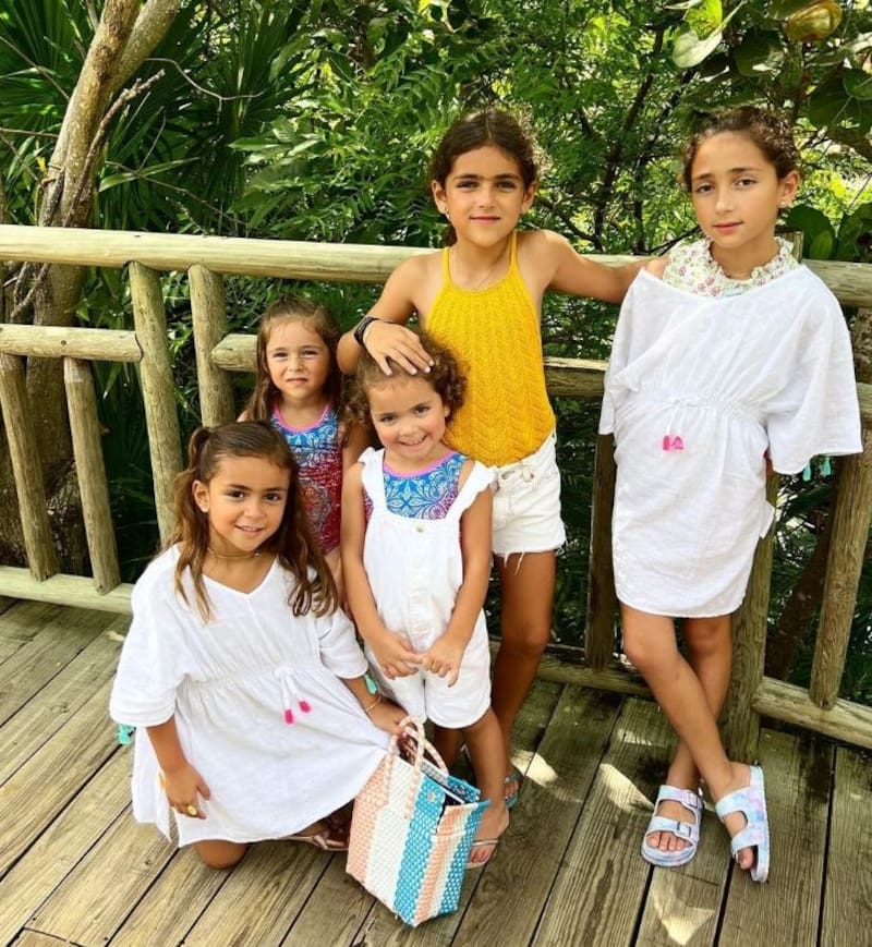 "Hello summer. Hello Vidanta #LlegaronlasFuentes", escribió al pie de una foto en la que se ve a sus hijas Jacqueline, Carolina, Renata, Paula y Emilia, sonrientes en la playa.