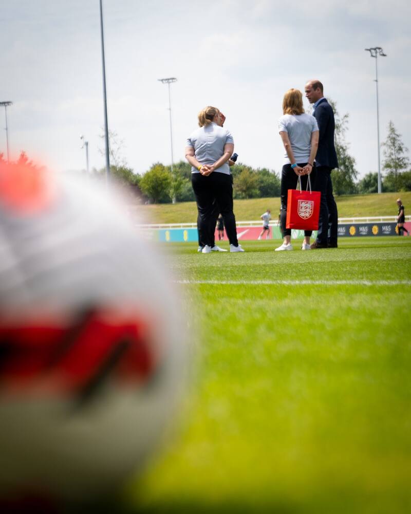 El príncipe William visitó al equipo de fútbol de Inglaterra durante su sesión de entrenamiento en St. George's Park en Burton upon Trent, rumbo a la próxima Eurocopa Femenina de la UEFA 2022.