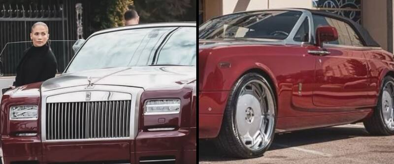 El lujoso auto de Jennifer Lopez es un modelo Rolls-Royce Phantom Drophead Coupe en color rojo de dos puertas. Está valorado en más de 500 mil dólares. Es convertible y tiene finos acabados en su interior en color blanco.