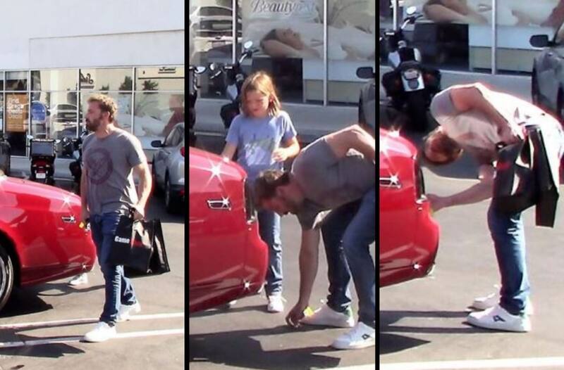 Durante varios minutos, Ben Affleck estuvo frente al auto tratando de buscar la ranura de la llave para poder abrir el auto, pero le fue imposible. Incluso por un momento, su hijo se acercó para ofrecerle su ayuda, pero no tuvo éxito.