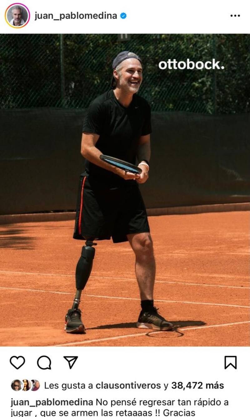 "No pensé regresar tan rápido a jugar, que se armen las retaaaas !! Gracias @ottobockmex @cucki1970 @otiumphysiotherapy @mariorosas___ foto @_kbocanegra @clubmundetoficial", escribió el actor en sus redes sociales, junto con una fotografía donde se ve sonriendo y jugando tenis.