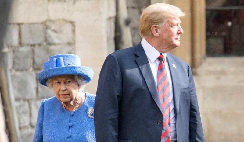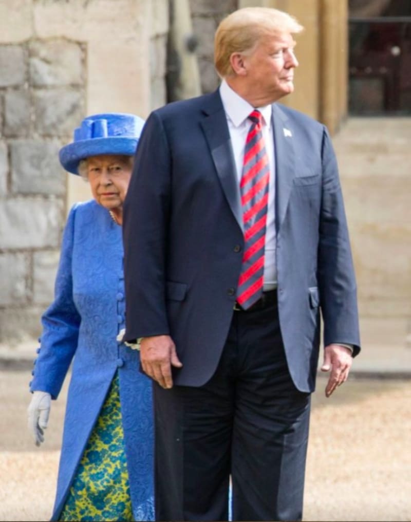El protocolo menciona que nadie debe caminar enfrente de la Reina, fue la cereza del pastel y la portada de todos los medios de comunicación ese día. Donald Trump la acompañó en el paso de revista de la Guardia Real pero decidió caminar algunos pasos delante de ella, incluso por un momento le dio completamente la espalda, hecho que fue considerado como fatal para la Corona y sus seguidores. El Presidente le cerró el paso y la Reina tuvo que rodearlo.
