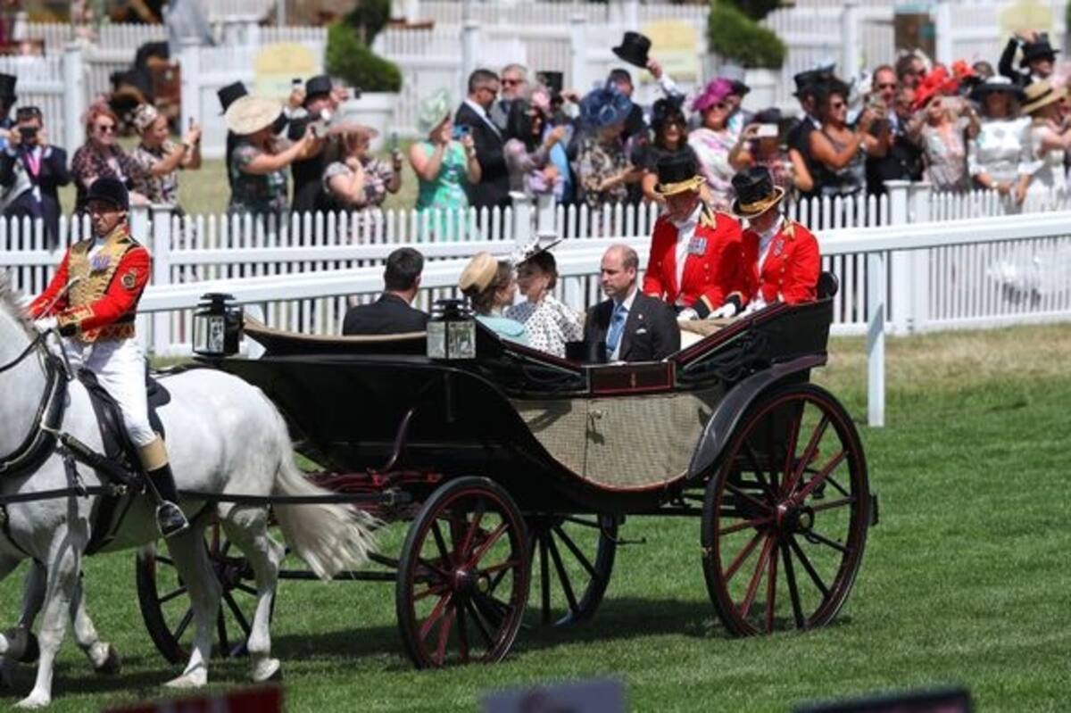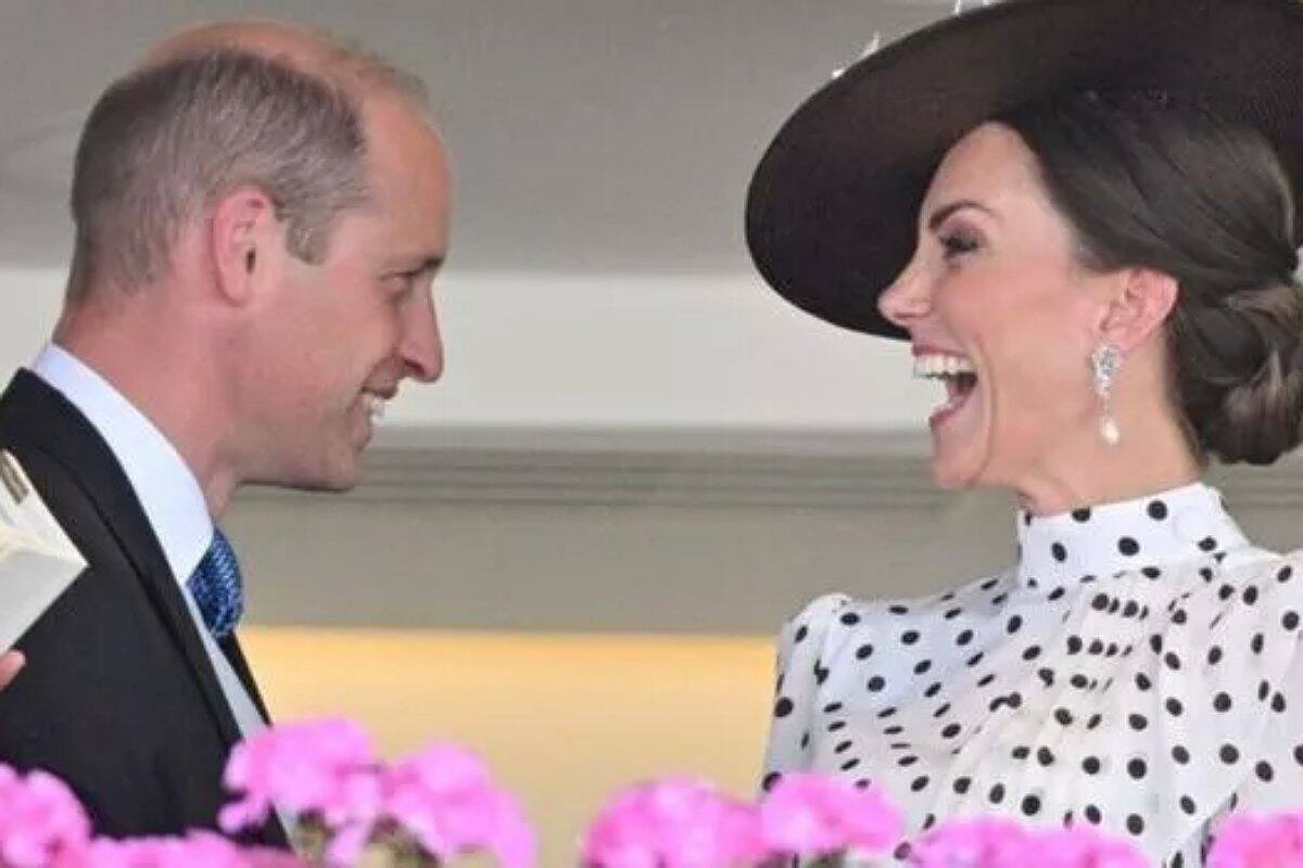 En esta primera aparición pública, luego de las celebraciones del Jubileo, se le vio con un vestido de lunares de cuello alto, mientras que el príncipe William vistió un frac negro con un chaleco gris. El duque y la duquesa de Cambridge sorprendieron a los observadores reales con su asistencia en el penúltimo día de las carreras, ya que los royals suelen asistir a estos actos en los primeros tres días del evento.