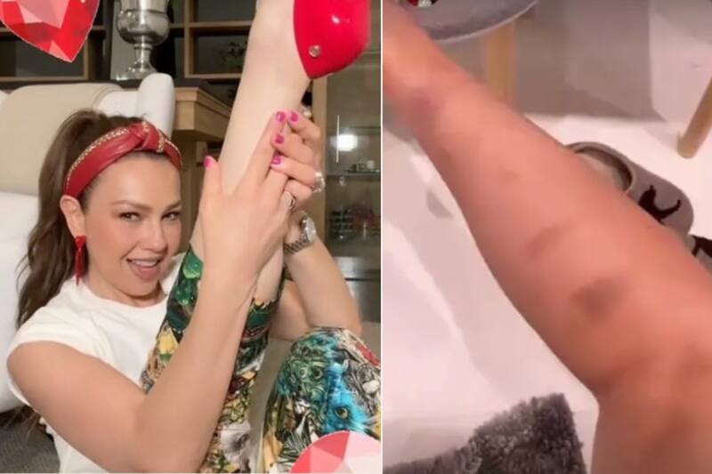 Thalía recientemente asustó a sus fans ya que subió algunas historias en su cuenta de Instagram oficial en donde se le ve con múltiples moretones en sus piernas.