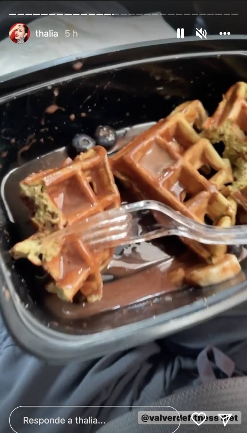 Sin duda la cantante de 50 años a pesar de tener arduas horas de trabajo y múltiples proyectos tiene sus tiempos para cuidarse y mostró a sus fans que desayuna sano: waffles de clara de huevo con proteína de chocolate así como al terminar su jornada laboral se da un relajante baño de tina.