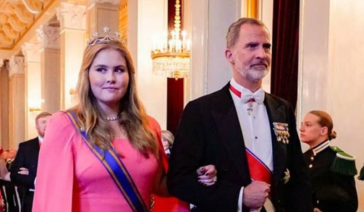 El Rey Felipe de España llegó solo y entró a la ceremonia con una "sustituta", la Princesa Amalia de Holanda quien acompañó al monarca del brazo a esta ceremonia tan especial como histórica.